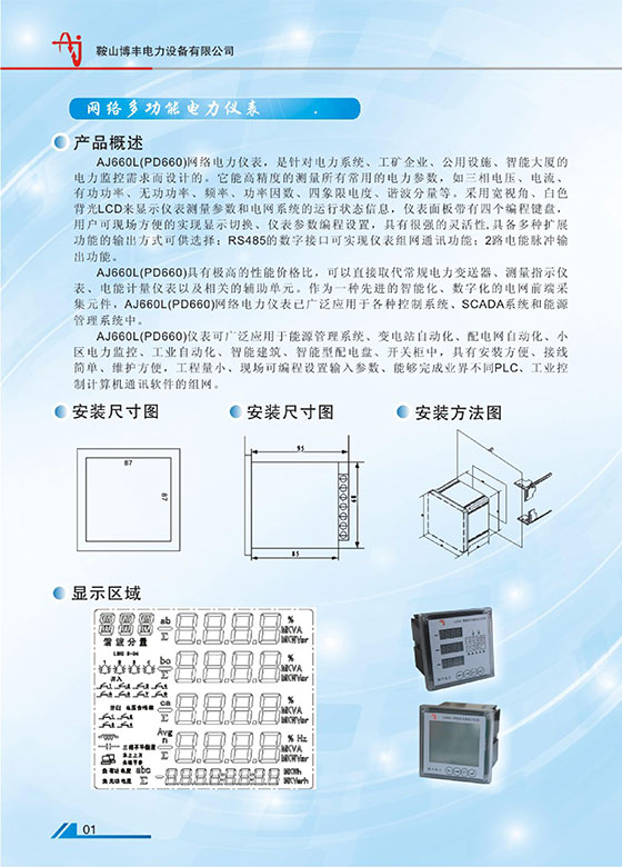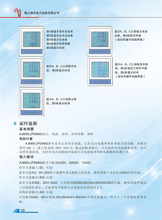 鞍山博豐電力設(shè)備有限公司產(chǎn)品:AJ660L,PD660,AJ660LPD660 ,網(wǎng)絡(luò)多功能電力儀表